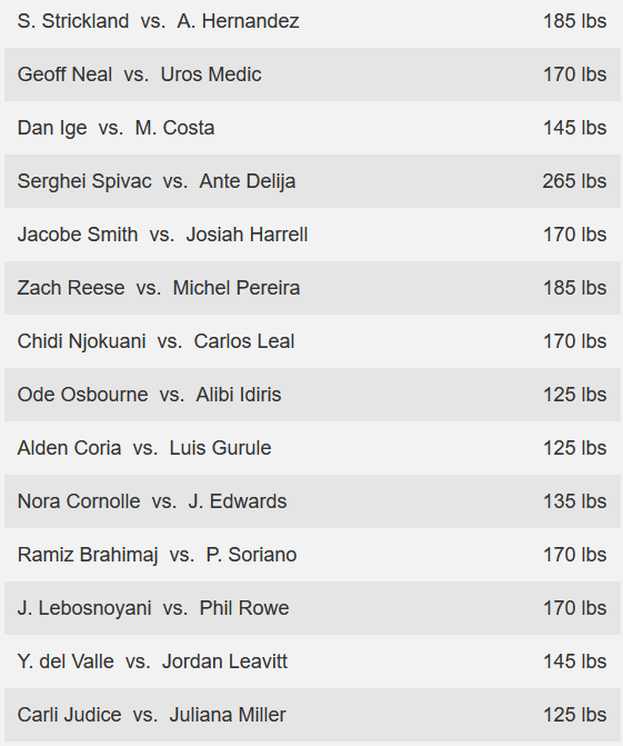 MIDDLEWEIGHT: Sean Strickland (29-7, #3) vs Anthony Hernandez (15-2 (1), #4)