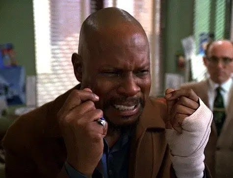You may notice that everyone’s coverage--mine, the media’s, even the UFC’s--focuses on the Everything Else instead of the Fight. That is because the is-it-real-or-not non-argument the MMA communtiy always has about fighters being assholes to each other (while ignoring footage of them laughing and hugging in their off-time) is the much more interesting side of things. Sean Strickland’s specialty is hypnotizing people into letting him gently cross them up for three to five rounds. He knocked Israel Adesanya down and hit him in the head eighty-five times, and Izzy barely had a mouse under his eye after the fight. The UFC tries very, very hard to get you to focus on Sean Strickland’s personality because his fighting style is exactly the kind of technically sound but casually uninteresting boxing they otherwise try to discourage.