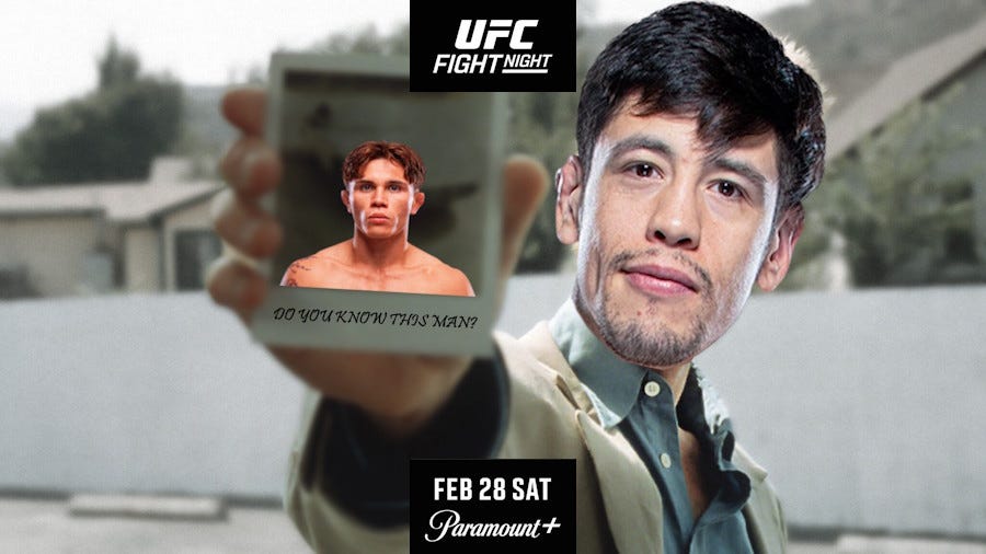 Nope! Angel Pacheco has been signed to the UFC for two and a half years and he has one fight and it was all the way back in March of 2024, and not only did he lose, but the man he lost to, Caolán Loughran, got released two fights later. Even though Loughran won his last fight, and the man he beat, Nathan Fletcher, is still signed. Angel didn’t even win his Contender Series fight--he dropped a decision to Danny Silva, but Pacheco was ‘just so tough,’ so they signed him anyway. It is 2026 and he’s either 0-1 or 0-2 in the company depending on if you count DWCS, and before his shot at the bigtime he was beating up a 9-14 guy, for the second time, in the main event of BUDWEISER’S BUD BRAWL II. He hasn’t won a fight since the Summer of 2022. The last time we saw him he got outstruck almost 2:1 and thoroughly outwrestled. He’s a guy from Minnesota in his mid-thirties and the UFC is employing him specifically to lose.